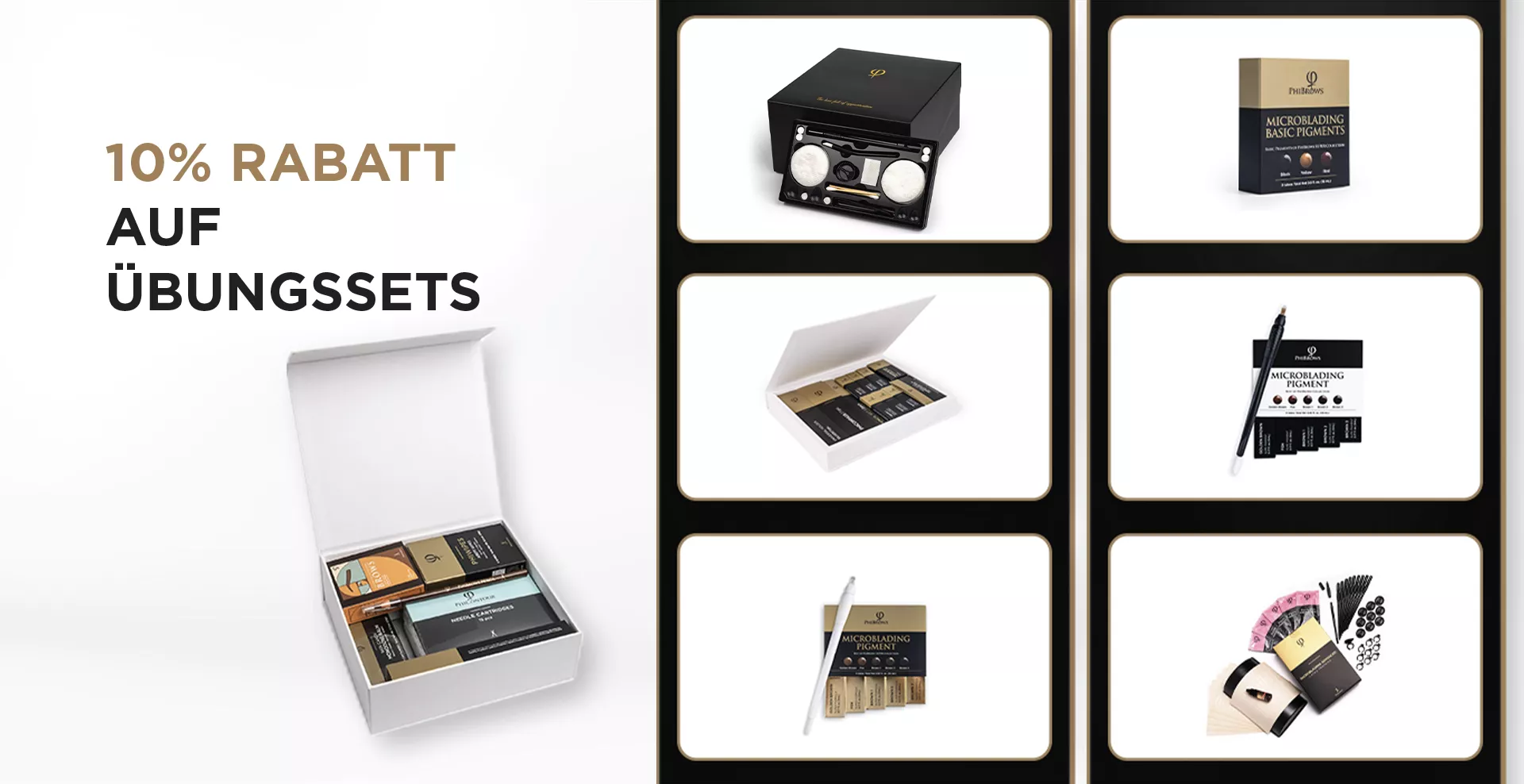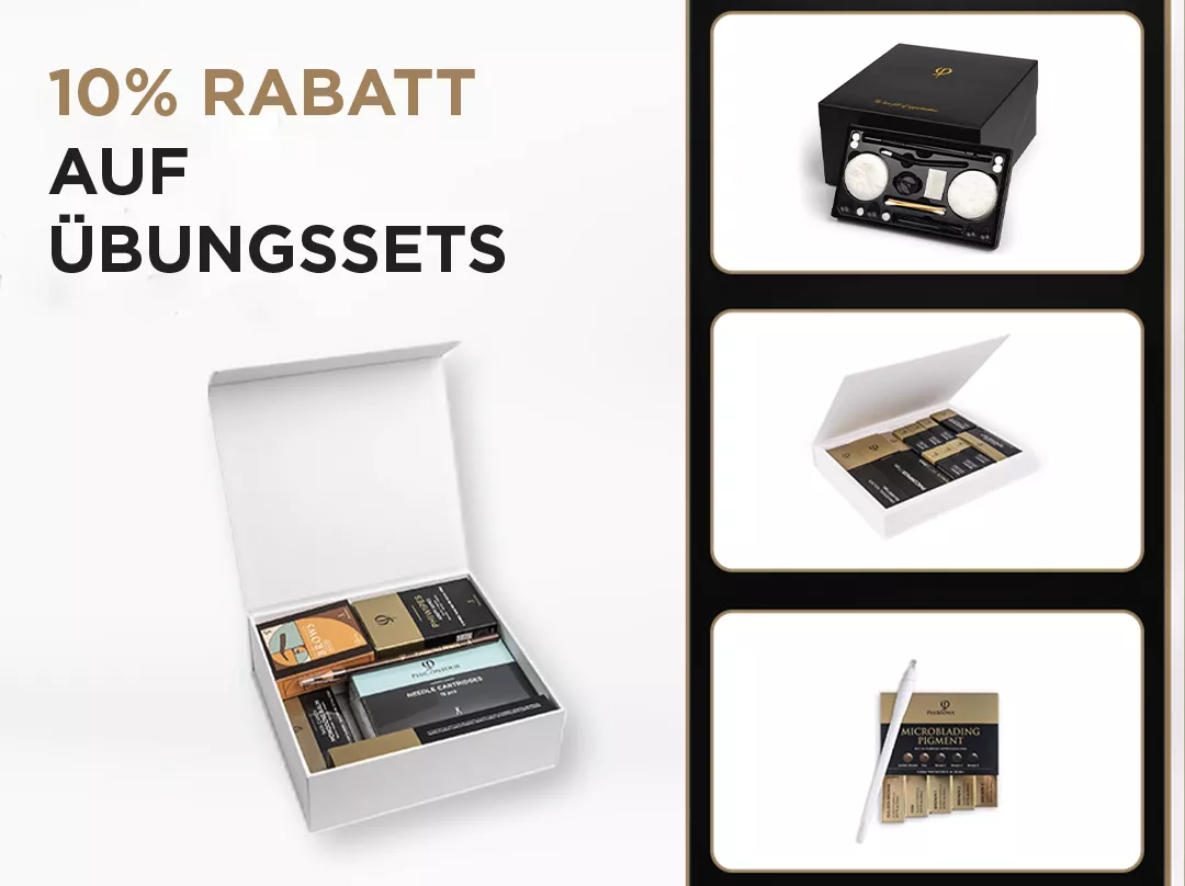 Wenn Sie eines unserer praktischen Sets kaufen, das speziell für Sie zum Üben und Perfektionieren Ihrer professionellen Schönheitsfähigkeiten entwickelt wurde, erhalten Sie einen Rabatt von 10%.