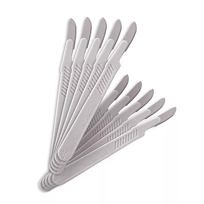 Die Skalpelle bestehen aus Karbonstahl, einem Material, das für seine Schärfe und Langlebigkeit bei chirurgischen Instrumenten bekannt ist.