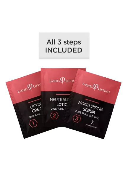 Wenn Sie bereits wissen, dass Sie alle Schritte kaufen möchten, können Sie unser Wimpernlifting-Set wählen. Es kommt mit allen 3 Sachtes, die für die Behandlungen benötigt werden.