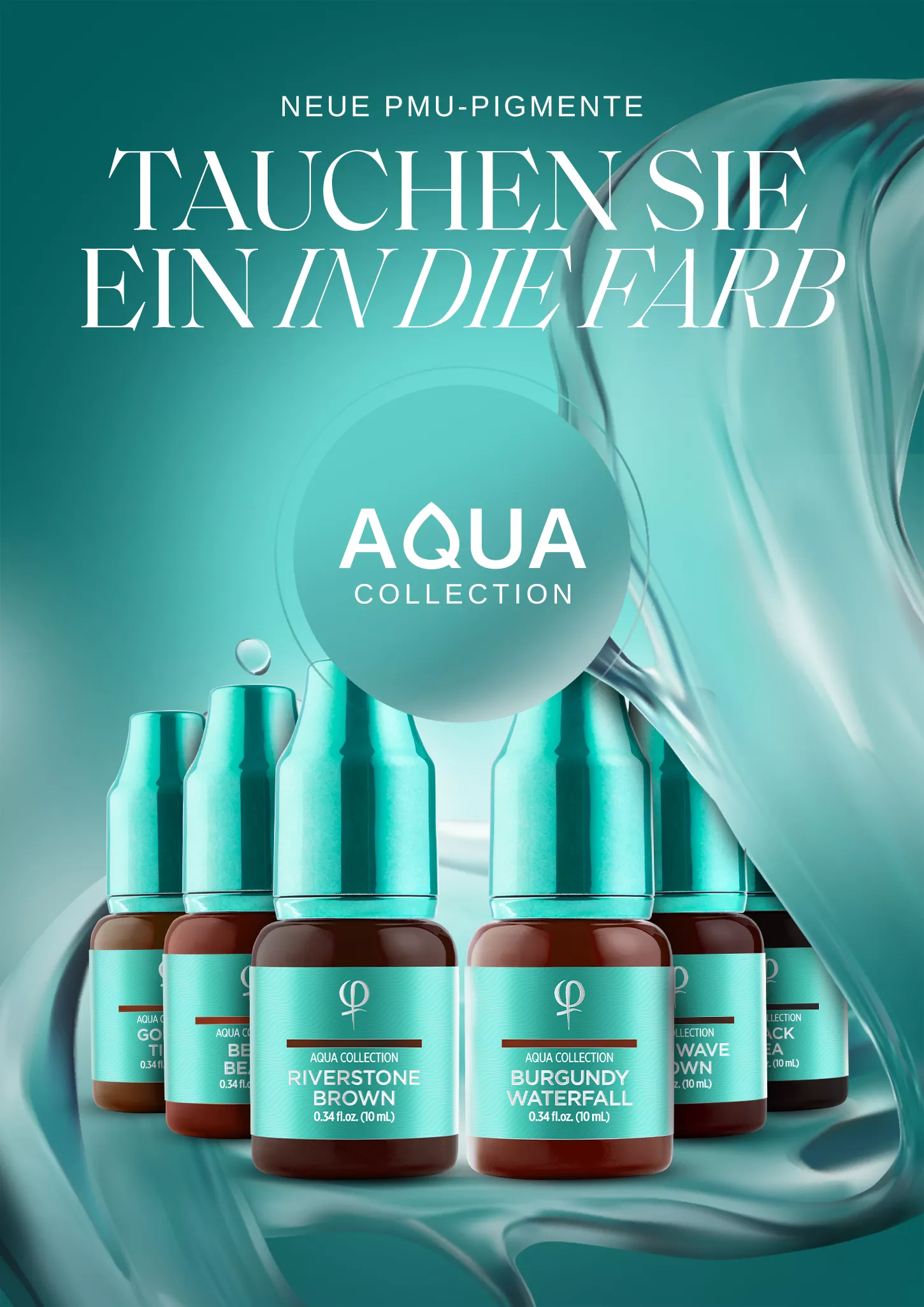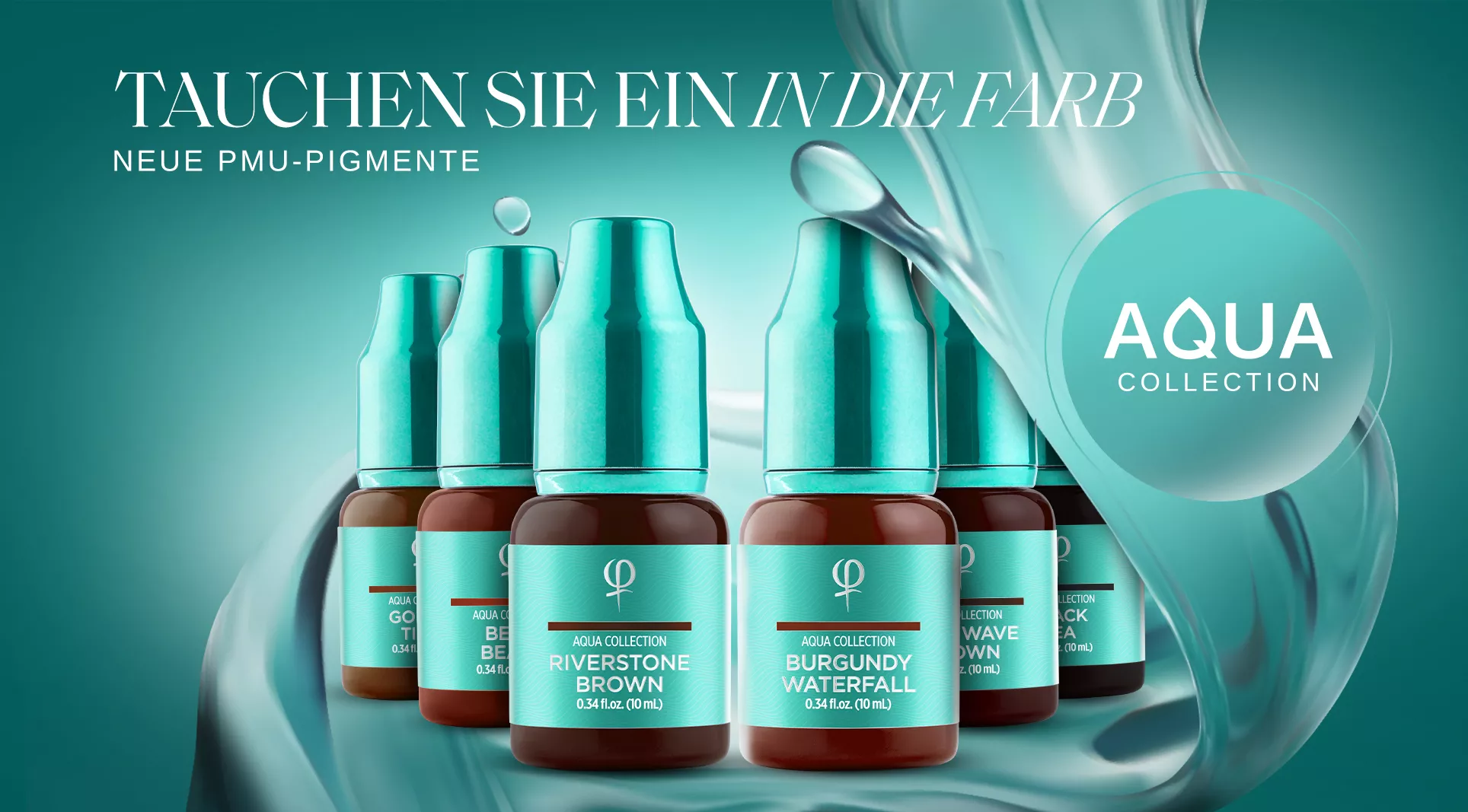 Wir präsentieren die Aqua Collection, eine neue Generation von PMU-Pigmenten, die mit einer wasserbasierten Formel für eine makellose Anwendung und langanhaltende Ergebnisse entwickelt wurde.
